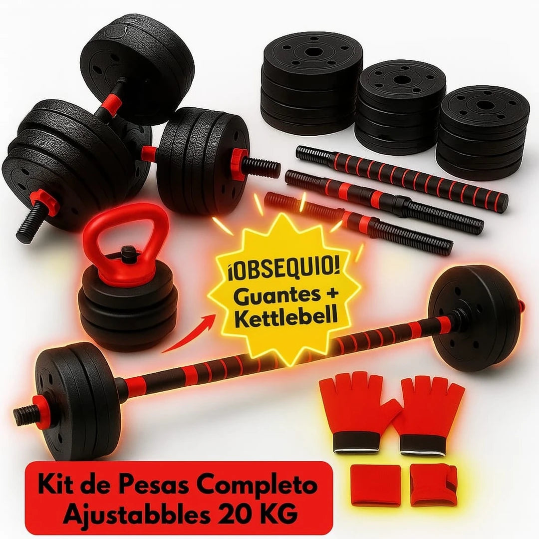 Timbre y tranquilidad: mancuernas, barra y pesa rusa en un solo paquete. Pídelo y paga al recibir para arrancar sin enredos desde la puerta de tu casa.